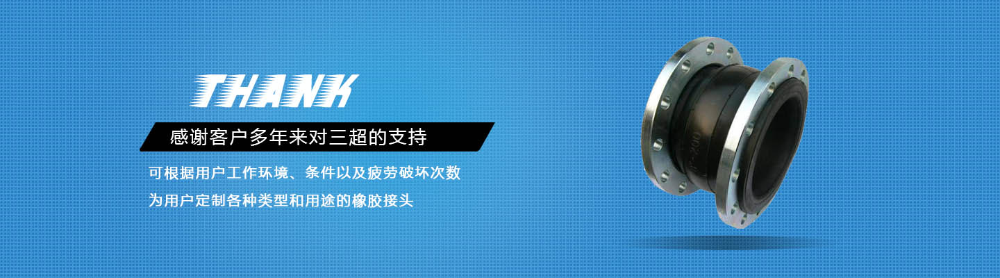 三超主要产品:种型号的专业生产多种型号橡胶接头、传力接头、防水套管、补偿器、 伸缩接头、伸缩器、鸭嘴阀、可曲挠橡胶接头,可曲挠单球橡胶接头、双法兰伸缩接头、双法兰传力接头、柔性防水套管、钢制伸缩器、波纹补偿器、非金属织物补偿器等系列产品。广泛使用于自来水、电力、钢铁、石油、化工、造纸、印刷、纯净水、城镇工业污水处理等行业。